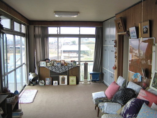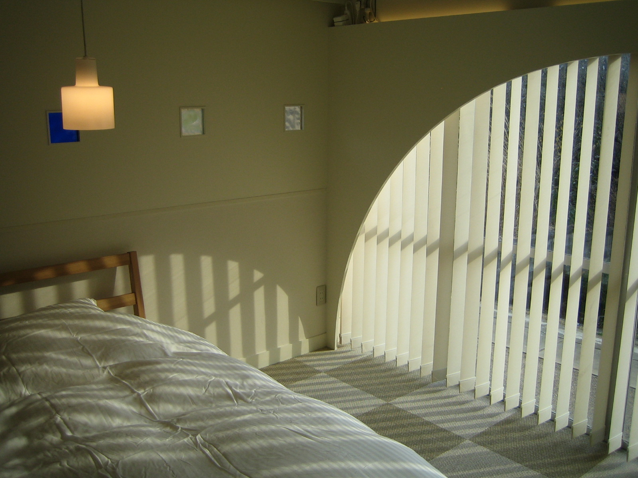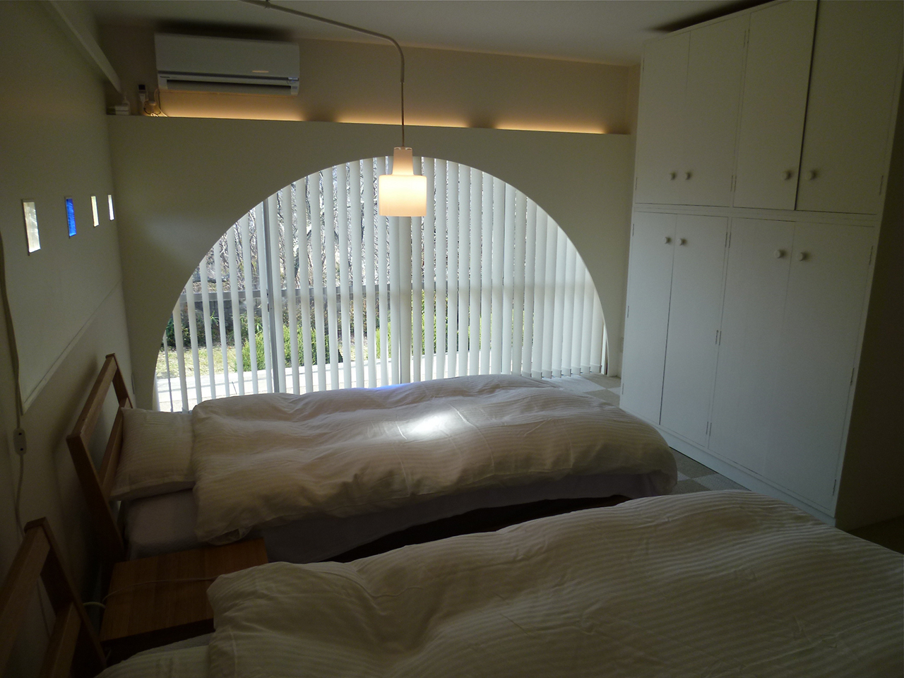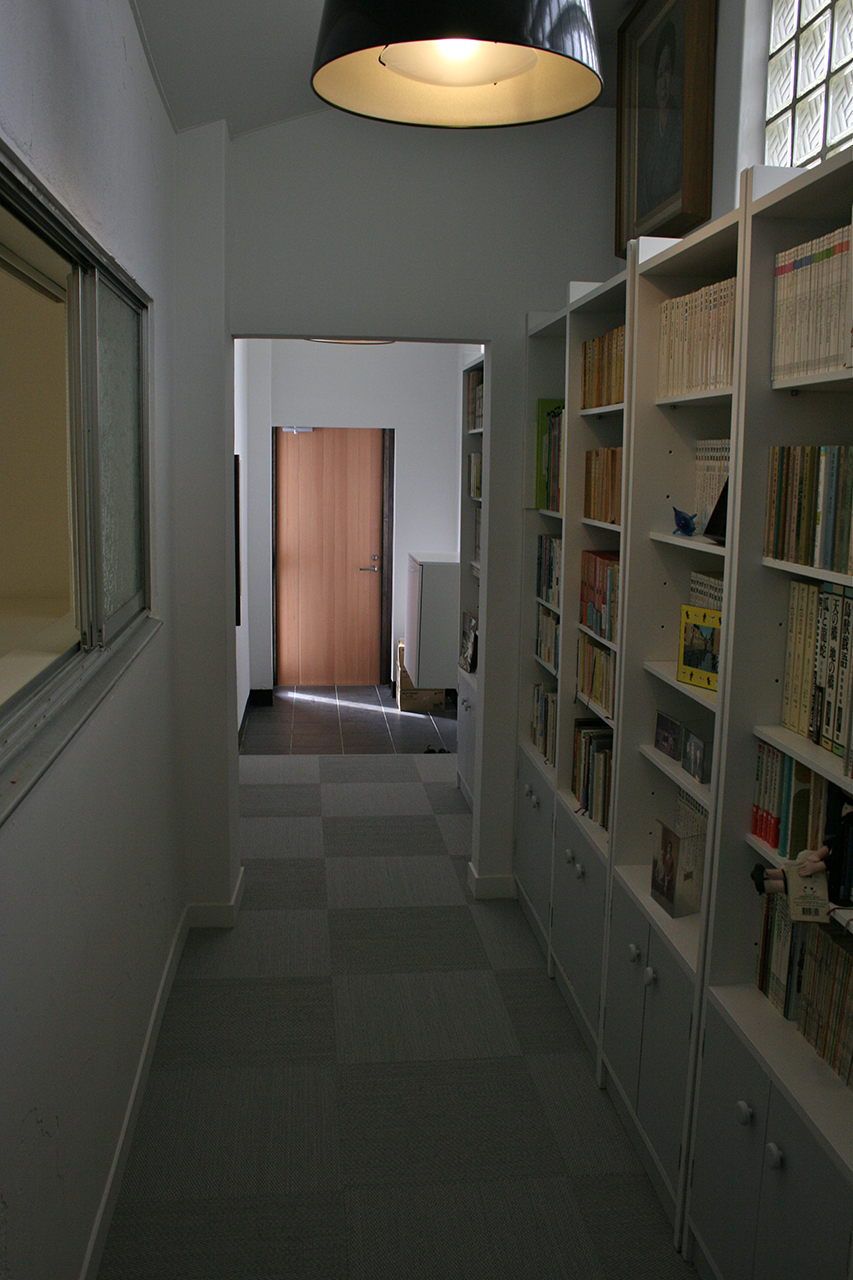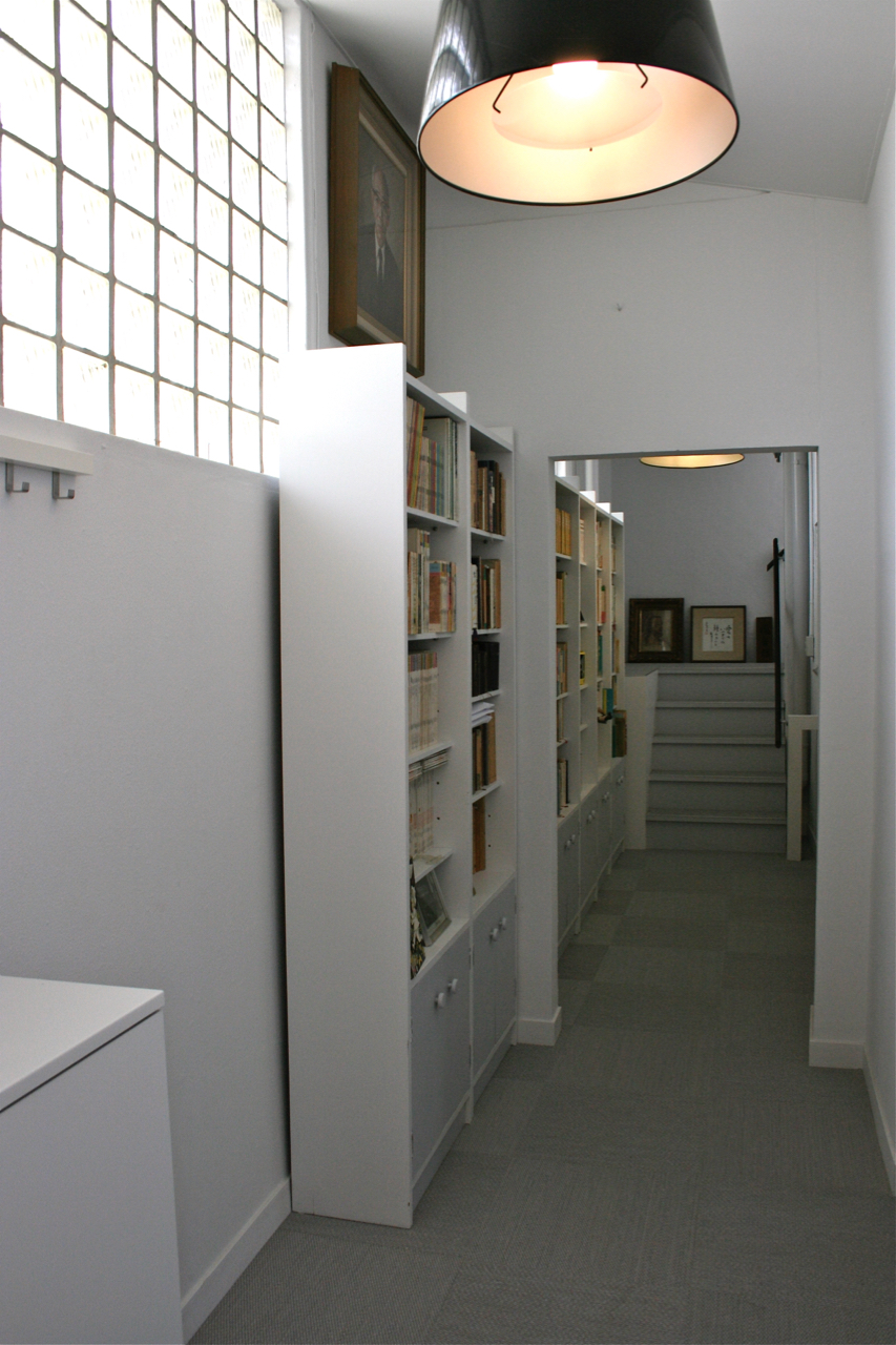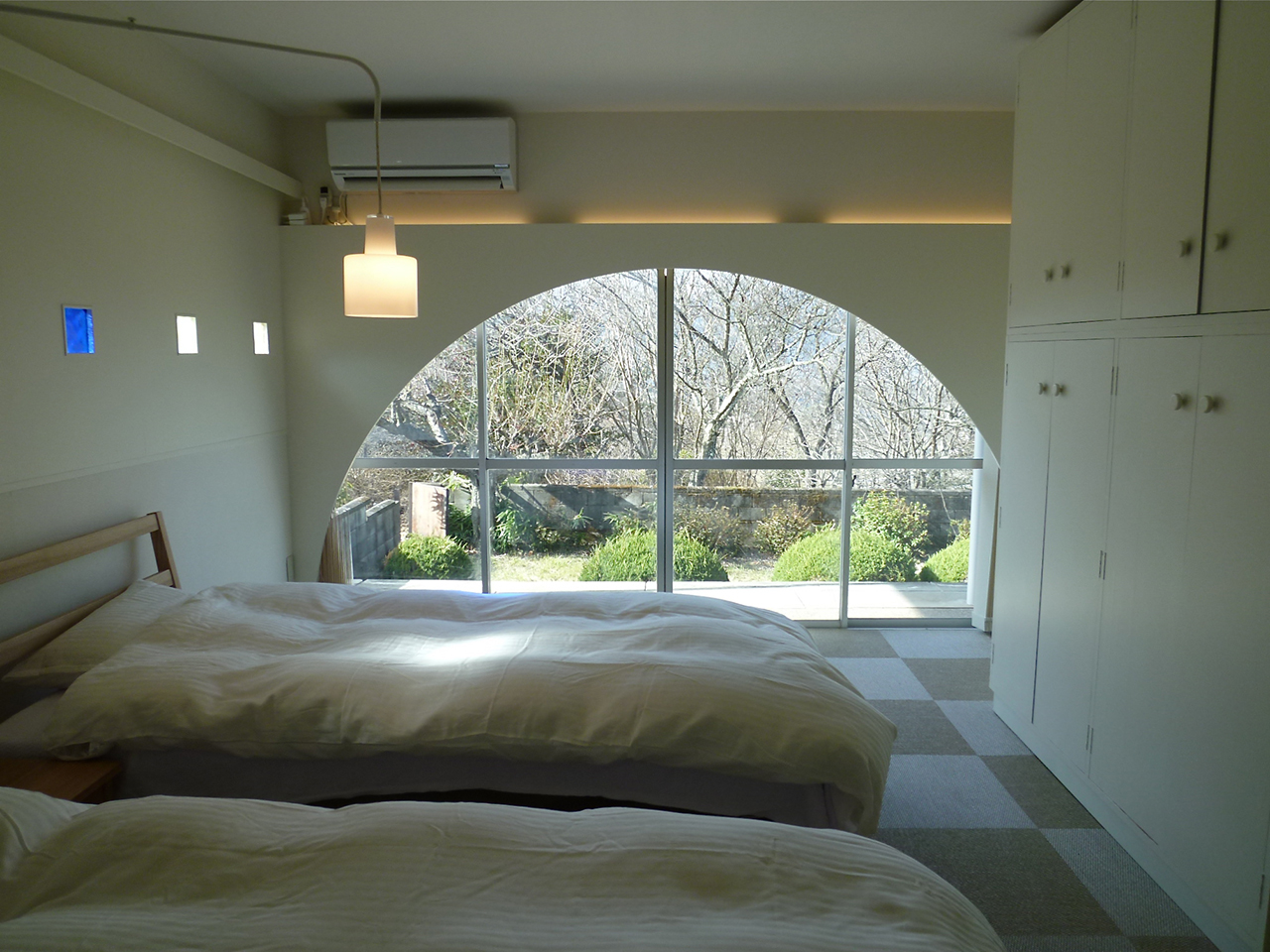 この計画は築45年の住宅のリフォームである。この家は当初別荘として建てられ、その後住宅となっていたが、家主の高齢化により不在となっていた。敷地は南アルプス連山や富士山、八ヶ岳など望めるとても良いところであり、主体構造の鉄筋コンクリート躯体も問題ないので、建物を生かしリフォームすることとなった。リフォーム計画のメインの内容は、使いにくい階段の位置を変更することであり、それ以外に間取りは変わっていない。改善項目としては、二階の居間の老朽化したアルミサッシュを木建具へと変更した事である。変更によって、居間の熱環境の改善を行うと共に、中間期にはフルオープンに出来る事で、豊かな自然を取り込めることとなった。居間の壁は木板張りであるが、経年変化で痛んでいたので、黒いステインで塗装した。結果白い壁との対比が内装のアクセントとなった。 |