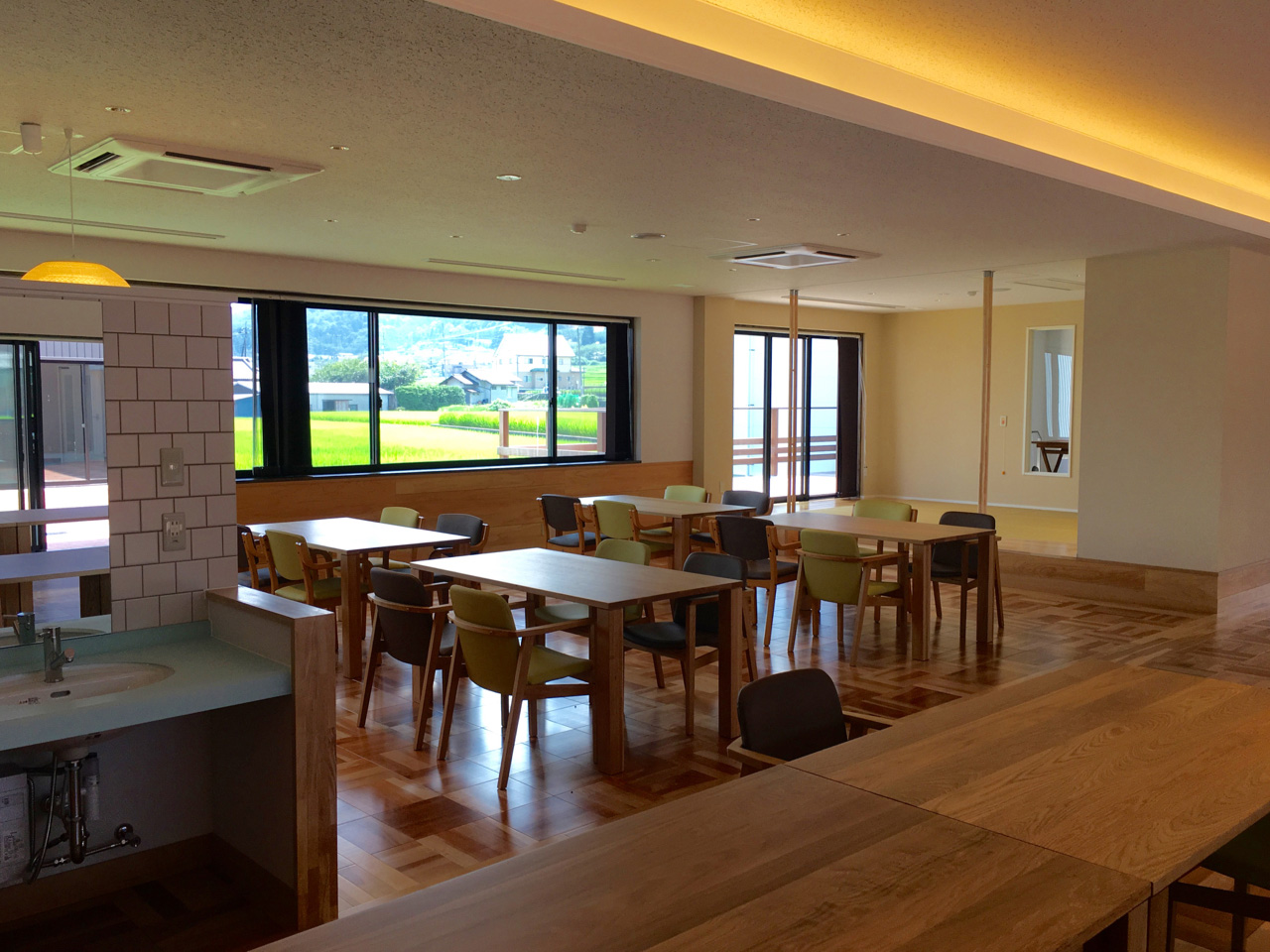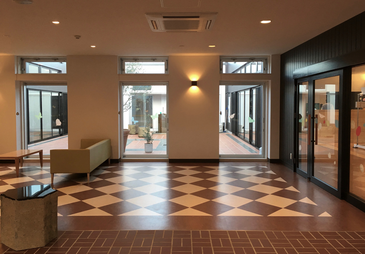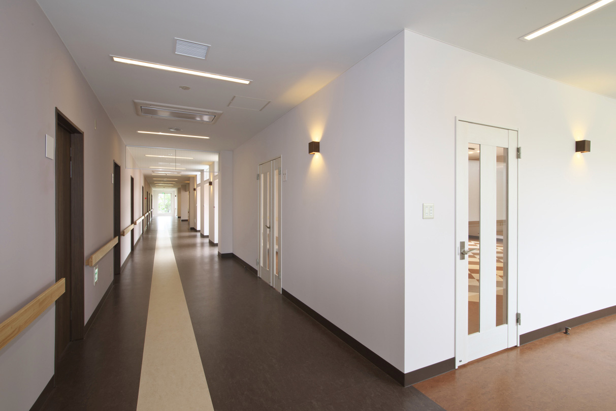 当施設は、老人保健施設の既存棟に隣接し、各種リハビリ施療を受けられるデイケア施設として計画された。敷地は南アルプス連山のふもとで富士山や八ヶ岳が望める優れた景観に囲まれている。建物は中庭を中心に機能回復訓練室、デイルームをはじめとする諸室が、取り巻く構成となっており、施設を共に利用する人々の動きがどこからも垣間見得る。この中庭を囲む建築形式は欧州で古くから修道院建築などで発展し、後に病院や宿泊施設へと展開したそうである。介護施設である当建築も部屋の構成などに類似点が多く、その優れた建築形式を採用する事で、より建物は機能的になりえた。尚、敷地の地下深くから湧く良質な天然温泉を引き入れ、利用者に足湯や飲泉のサービスが提供されている。