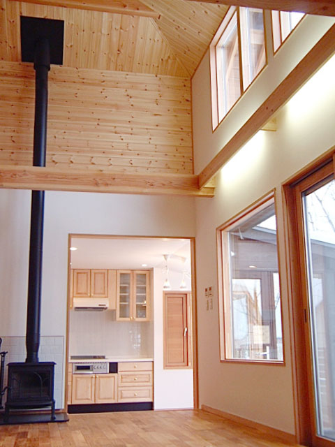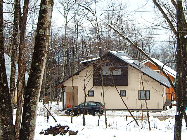 敷地は八ヶ岳の標高1000mの土地に開発された別荘地である。別荘地には決められた容積や高さ制限のほか、切妻屋根である事などが条件として指定されている。会社をリタイアされた御夫妻が一年を通し暮す家であることなどの生活スタイルを考慮し、1Fの居間を中心として諸室がとりまき、普段の生活は完結できるようにした。2Fは来客用の屋根裏部屋である。